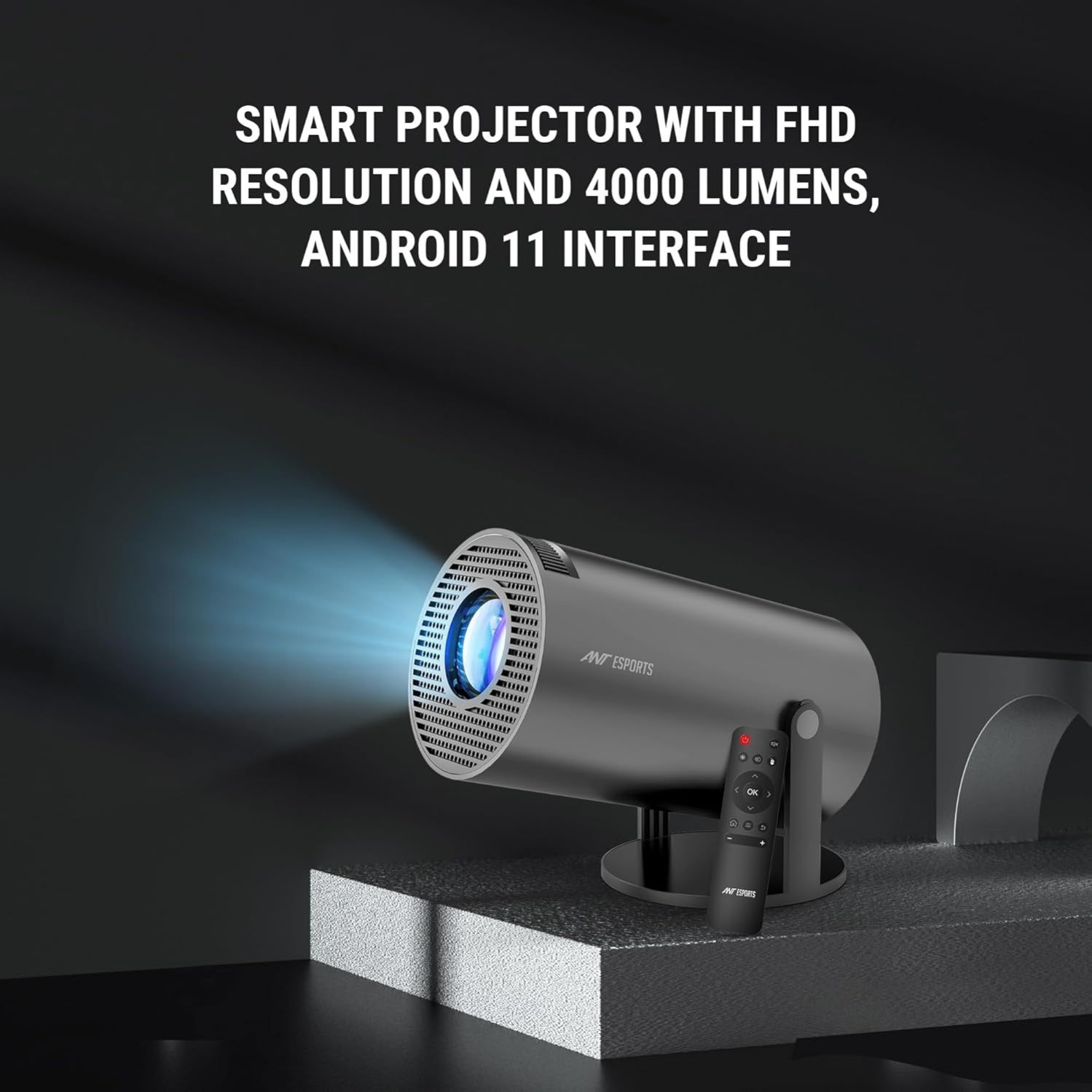Ant Esports View 515 Smart LED Mini Projector for Room & Home | 4000 Lumens | 1080p Native 4K Support | Android | OTT Apps (JioHotStar,Netflix,Prime Video) | Dual Band WiFi + BT 5 | Angle Adjustment