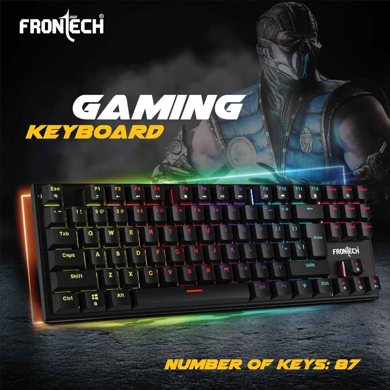 - WIDER KEY LAYOUT: The FRONTECH RGB Mechanical Gaming Keyboard now offers a more spacious layout with 87 keys, perfect for gamers seeking a comfortable and expansive typing experience.