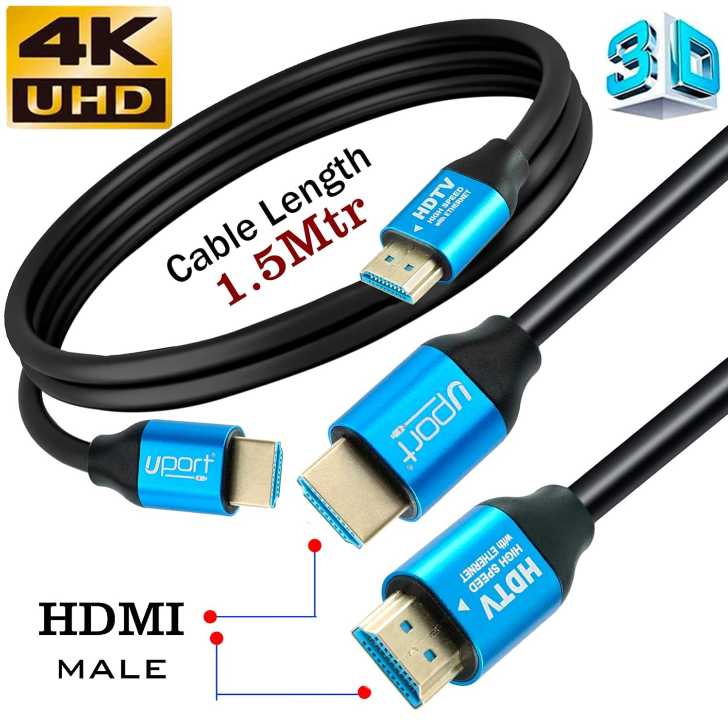 UPORT 1.5 Meter 4K HDMI Cable with Ethernet, 4K/2K Ultra HD 1080P Resolution, 18 Gbps High Speed Transmission, Compatible with TV, Laptop, Monitor, Projector, Gaming Console, Blu-ray player & More