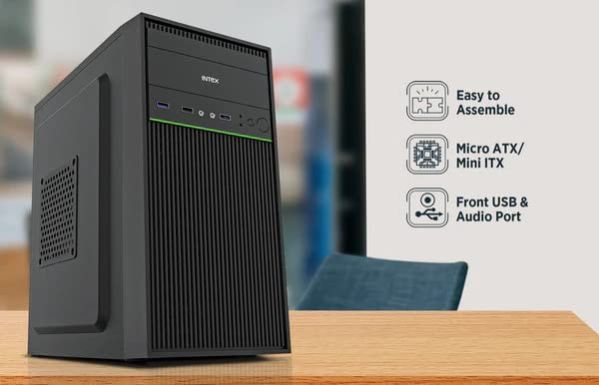 - This black cabinet features a stylish green strip along the bottom front. Featuring two internal hard bays, compatibility with P4 series ATX/ Mini ITX motherboards, and a CPU/PCI graphic heat vent for effective cooling, this cabinet is a premium model, completely manufactured in India.