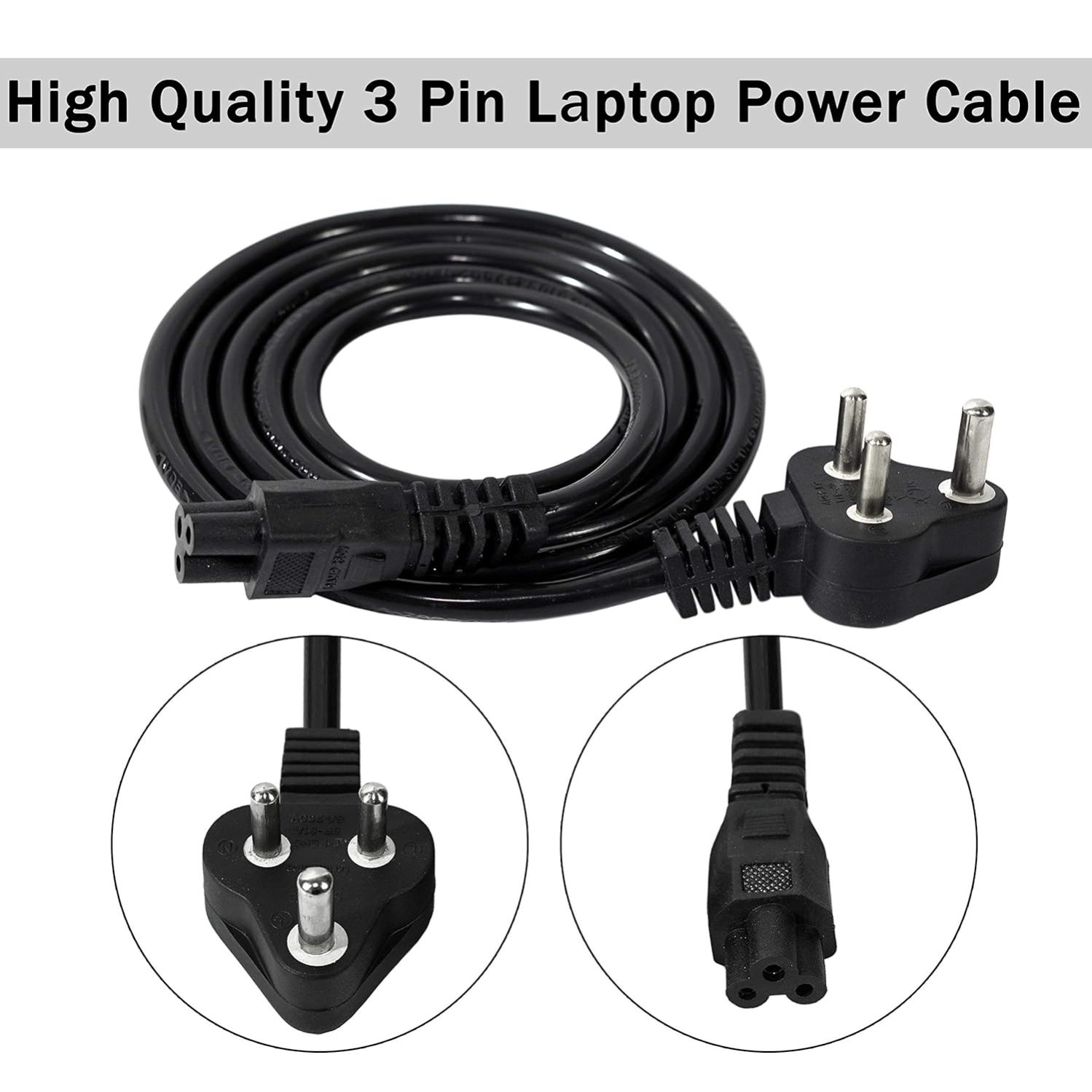 - Features / Power Specs of Laptop Power Cable: 1.5M Long High Quality STQC(India) Compliant 3 Prong AC Power Cord