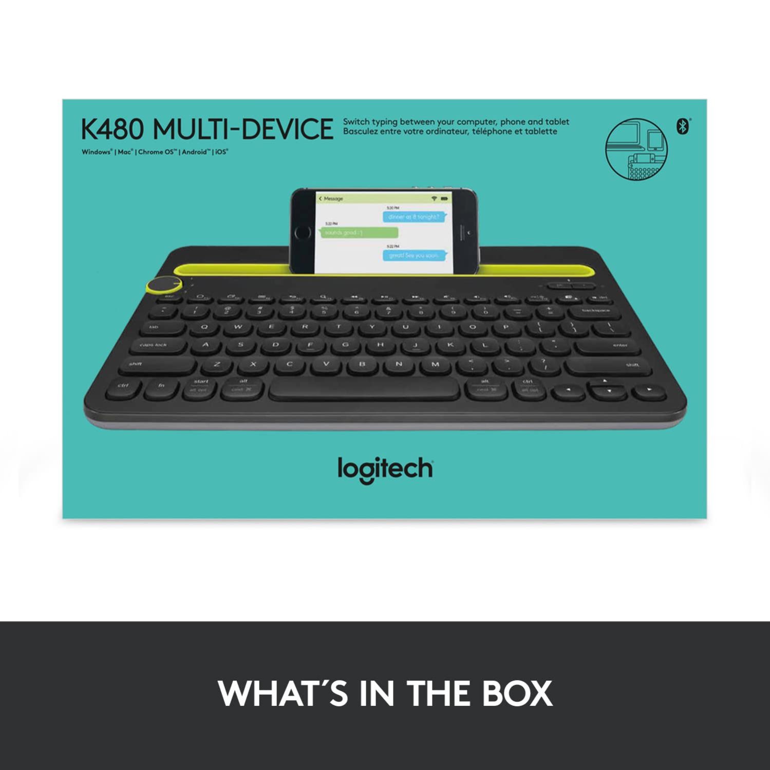 - Easy-Switch Dial: Simply turn the dial of the Logitech K480 keyboard to switch typing between 3 connected Bluetooth wireless devices, you can work with Windows, macOS, Chrome OS, Android, and iPadOS.