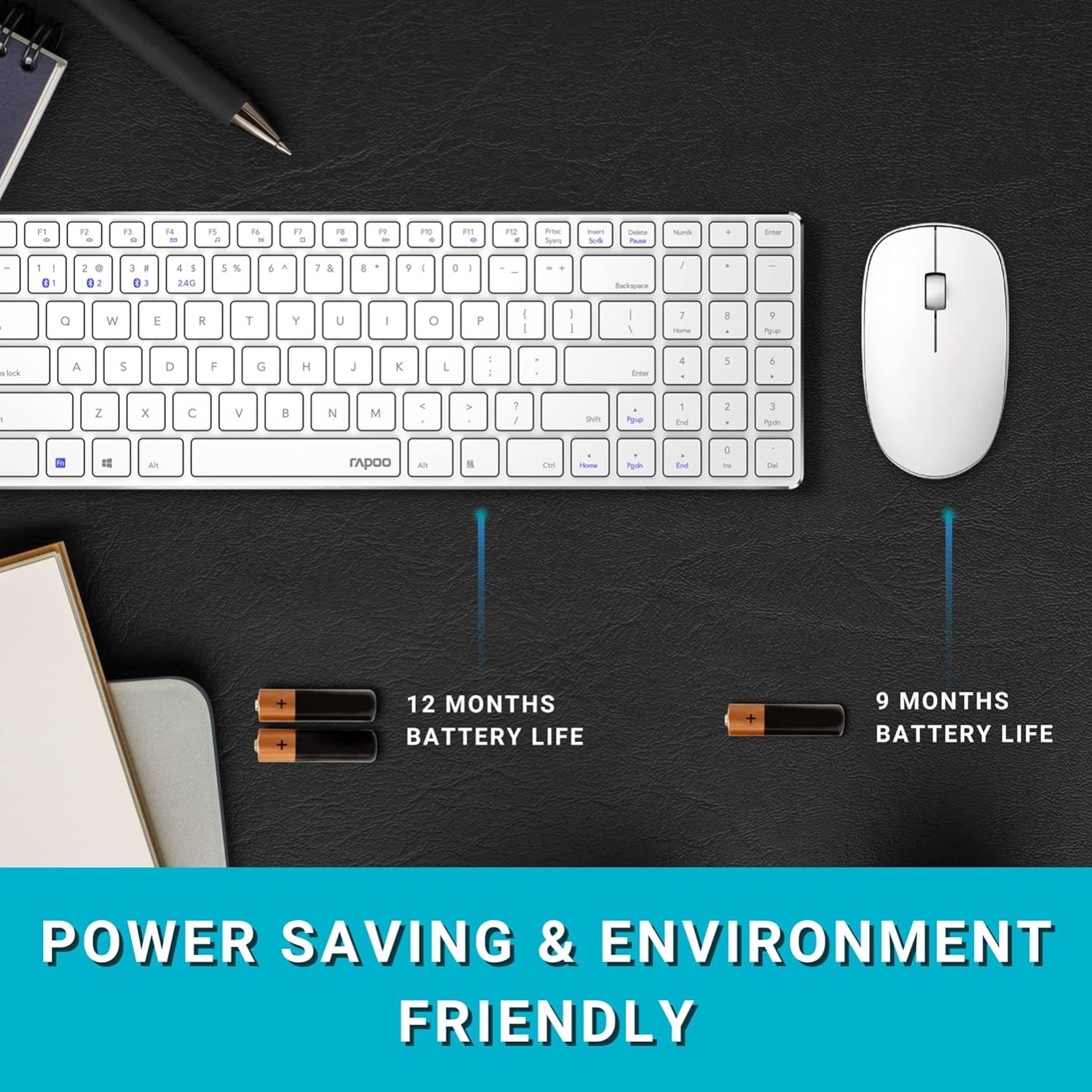 - Up to 12 months battery life With Rapoo’s energy-saving technology and power switch, you can use your mouse without power interruption for up to 12 months.
