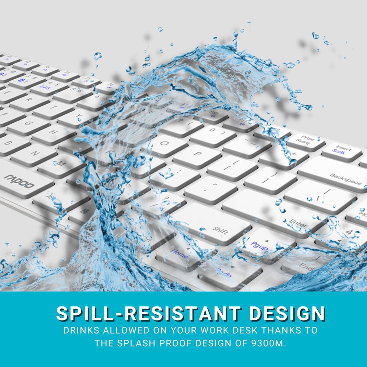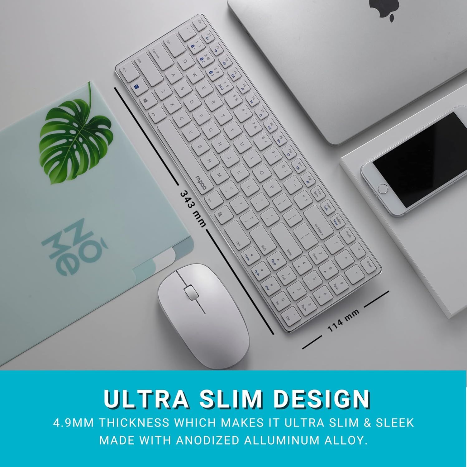 Rapoo 9300m Multi-Device Bluetooth + 2.4Ghz Wireless Keyboard and Mouse Set Ultra Slim Design, Spill-Resistant, Anodized Aluminum Body for Windows/PC/Chromebook,