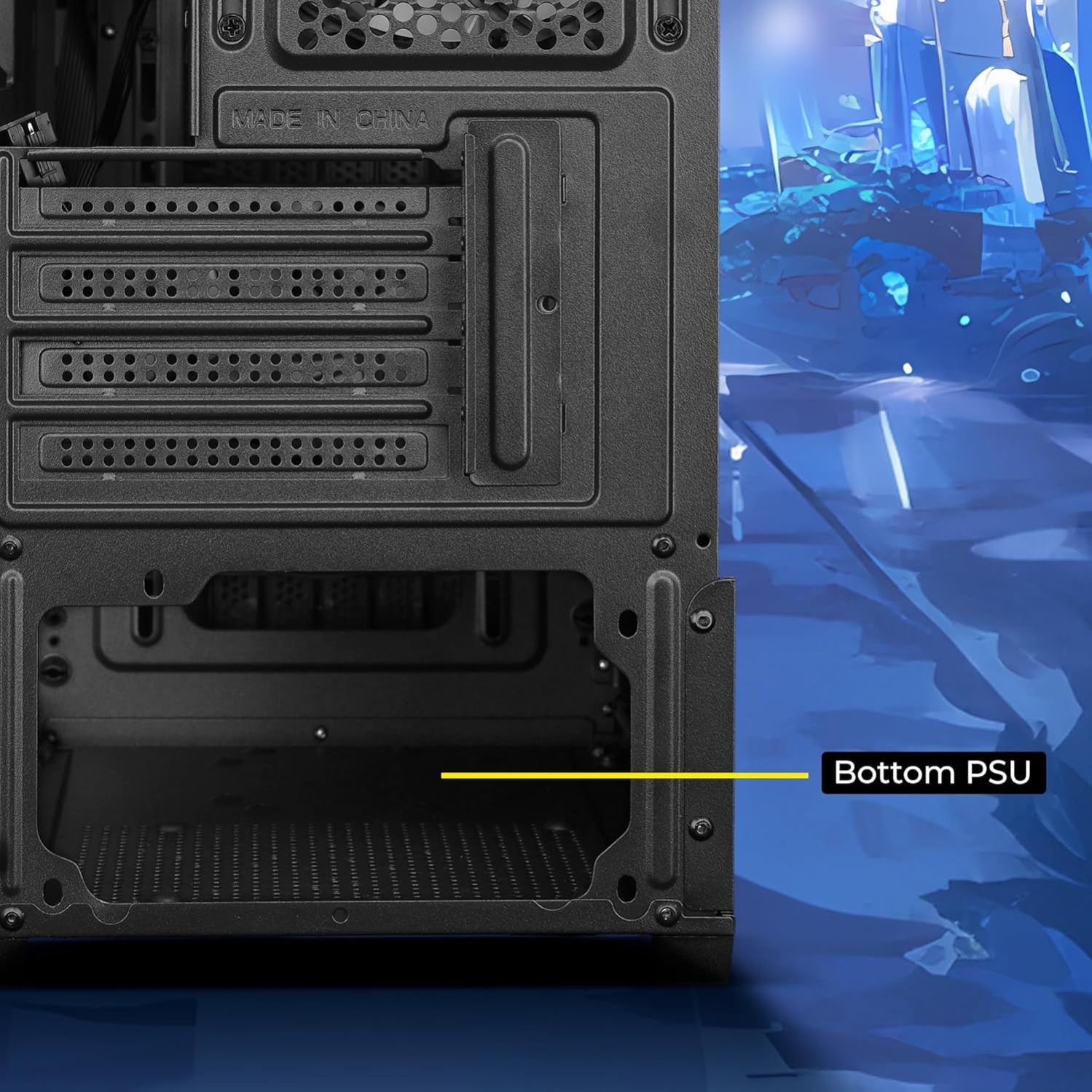 - Device support: The chassis fits VGA cards up to 270mm, CPU coolers up to 167mm, and allows bottom-mounted PSU.